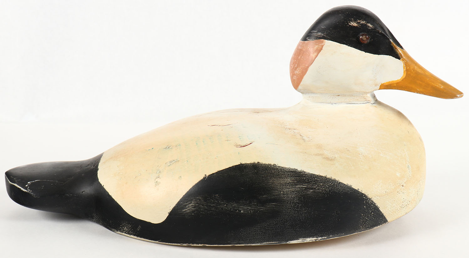 Eider Drake by unknown maker, GE, solid wood, original paint, structurally excellent, 15 1/2'' OAL. Grade: Excellent - Value: 20 to 40