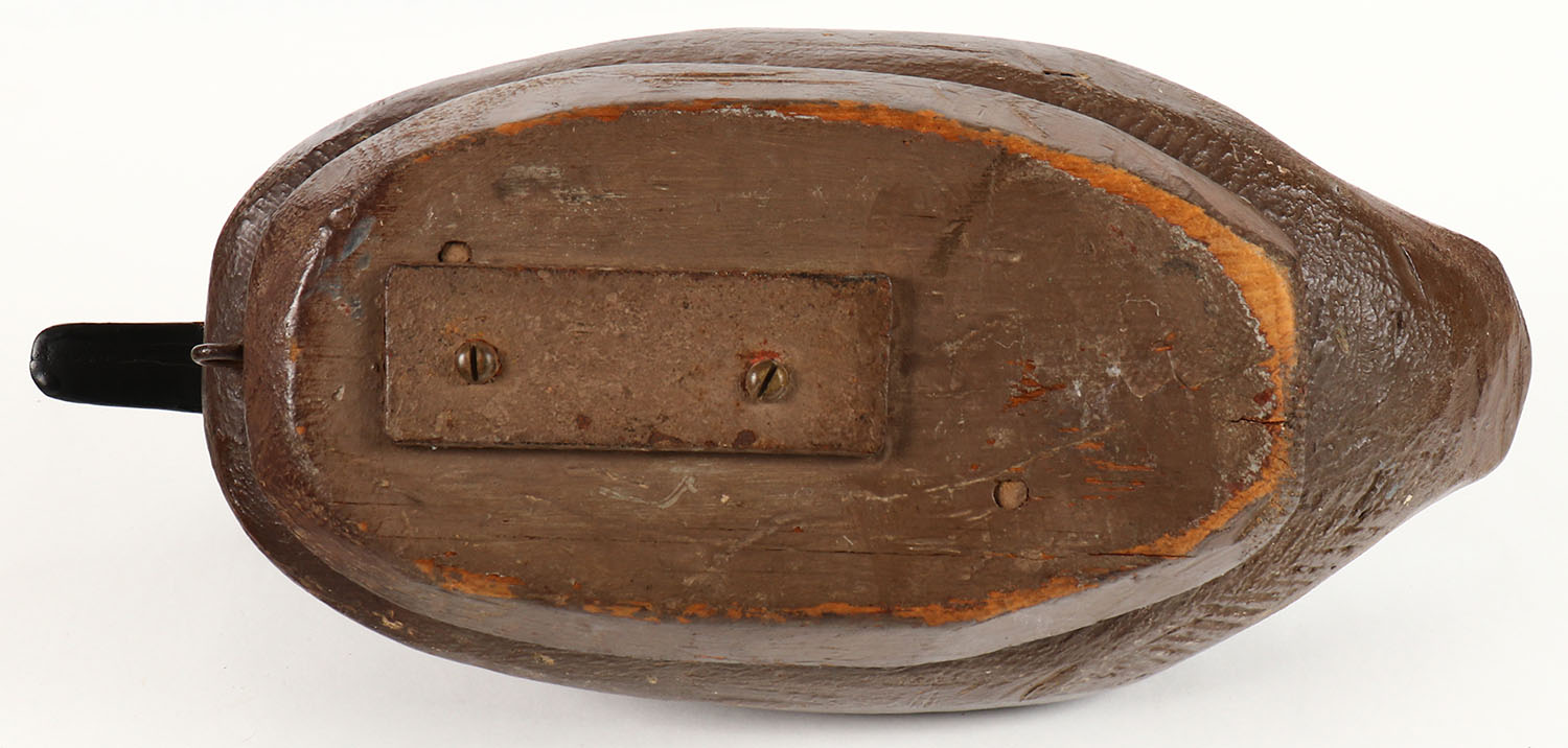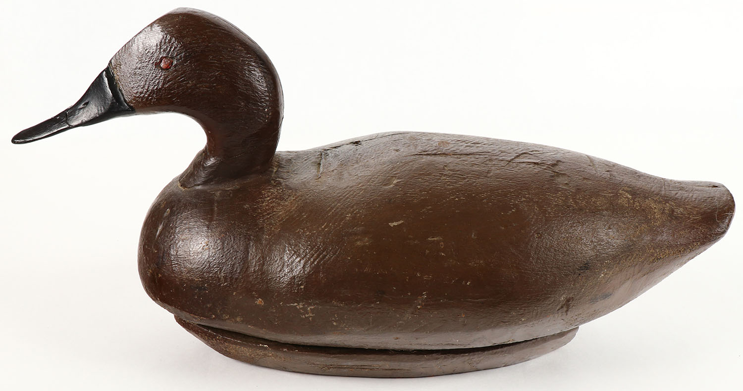 Canvasback Hen by unknown maker, PE, solid wood, old repaint, has hair line crack in neck, 15'' OAL. Grade: Excellent - Value: 20 to 40