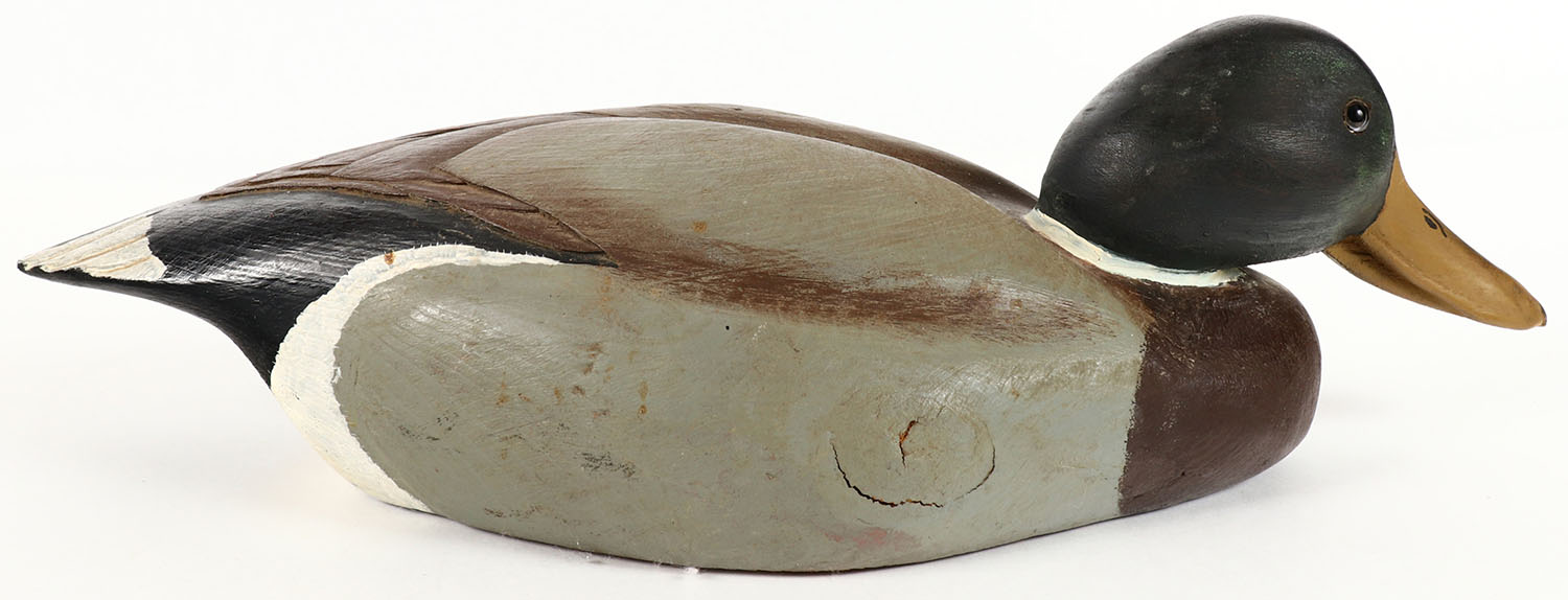 Mallard Drake by TK, GE, solid wood, orignal paint, structurally excellent, 15 1/2'' OAL,. Grade: Excellent - Value: 20 to 40
