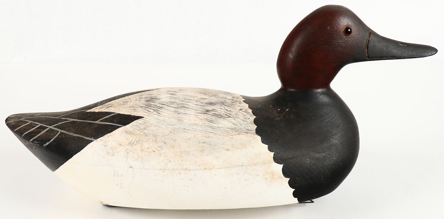 Canvasback Drake by unknown maker, GE, hollow wood, original paint, structurally excellent, 17'' OAL. Grade: Excellent - Value: 20 to 40
