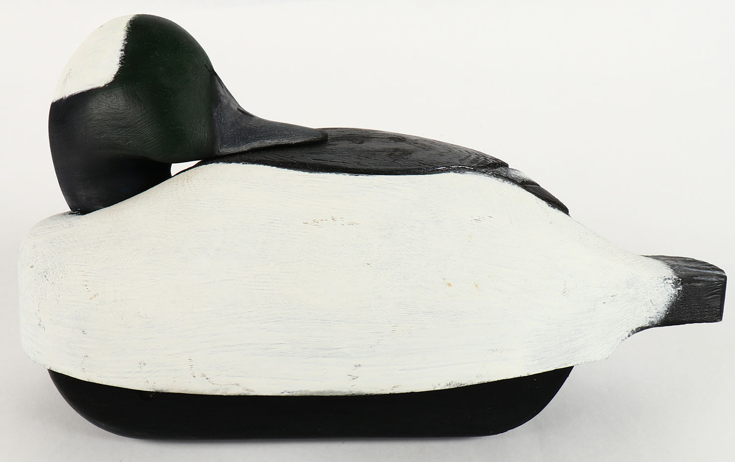 Preening Bufflehead Drake by BH, PE, solid wood, original paint, structurally excellent, 11'' OAL. Grade: Excellent - Value: 20 to 40