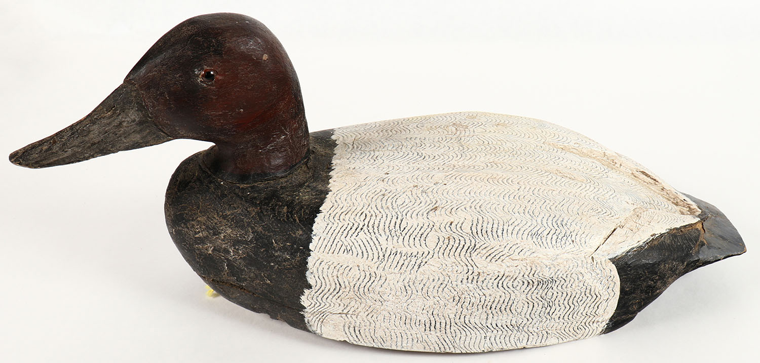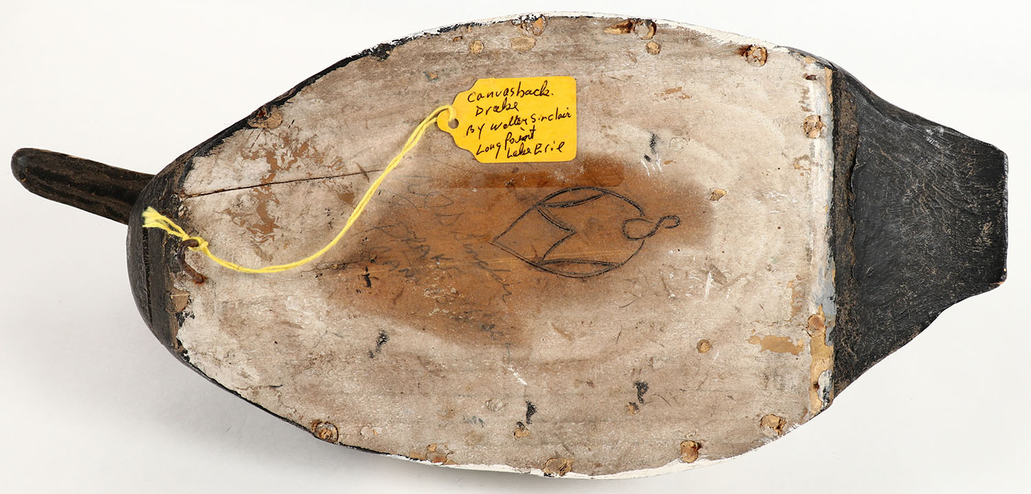 Canvasback Drake by Walter Sinclair, Long Point Lake Erie PA, GE, hollow wood, original comb paint, structurally excellent, 16'' OAL. Grade: Very Good ++ - Value: 20 to 40