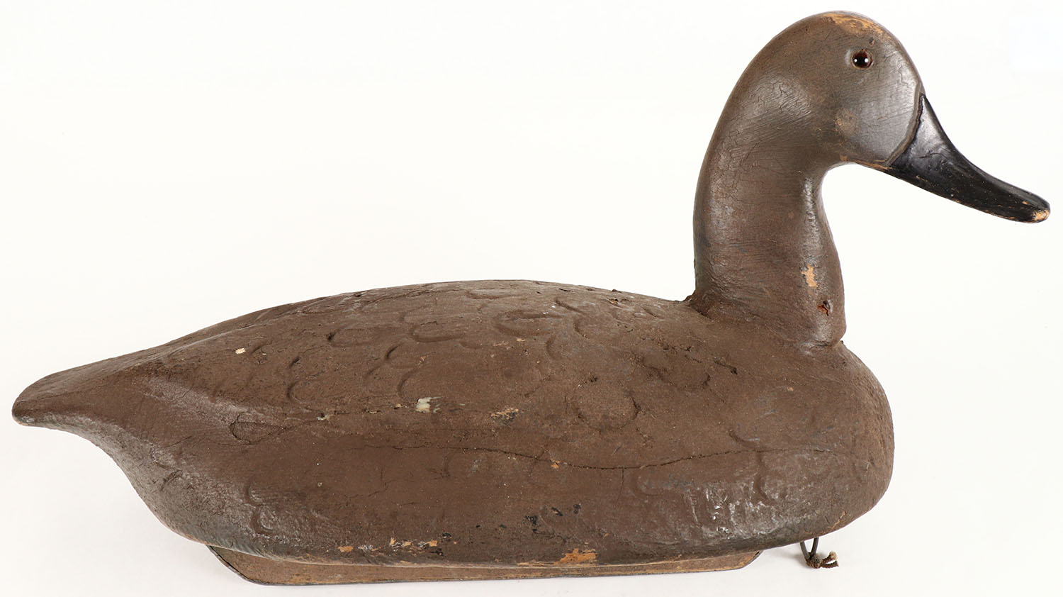 Canvasback Hen by unknown maker, GE, solid wood, original paint, structurally excellent, 17 1/2'' OAL. Grade: Excellent - Value: 20 to 40