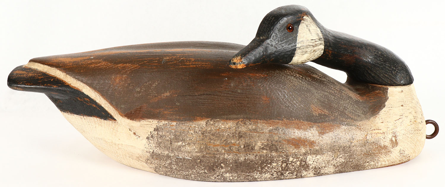 Preening Canada Goose by Gordon A. Lcorn, DU decoy, GE, solid wood, original paint, 22'' OAL. Grade: Excellent - Value: 30 to 60