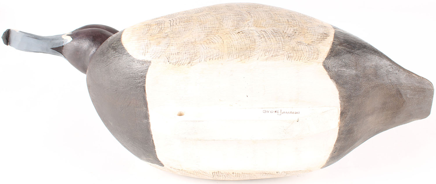 Swimming Ringneck Drake by Stor Johann, GE, hollow wood, original paint, 16 1/2'' OAL. Grade: Excellent ++ - Value: 70 to 200