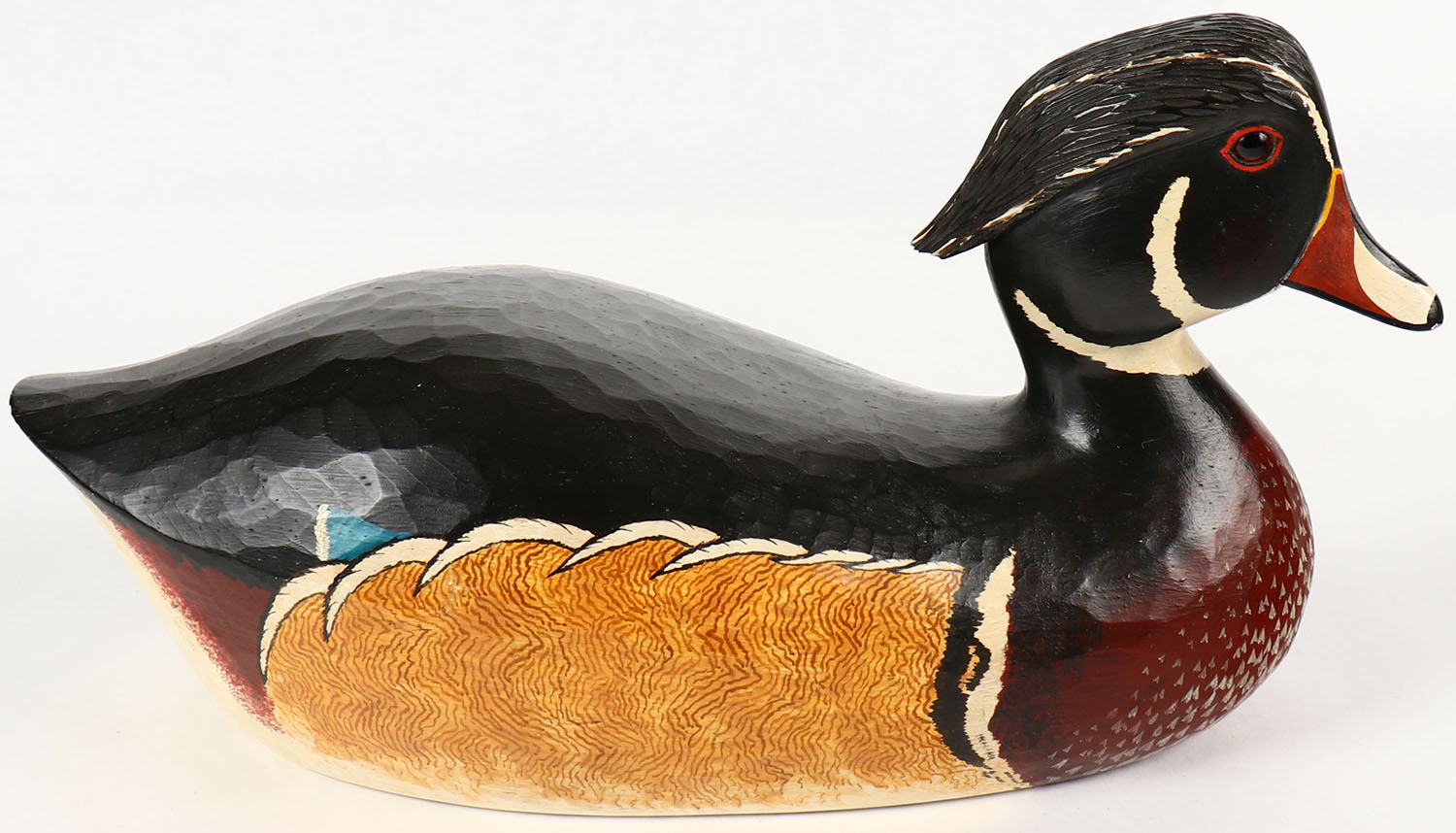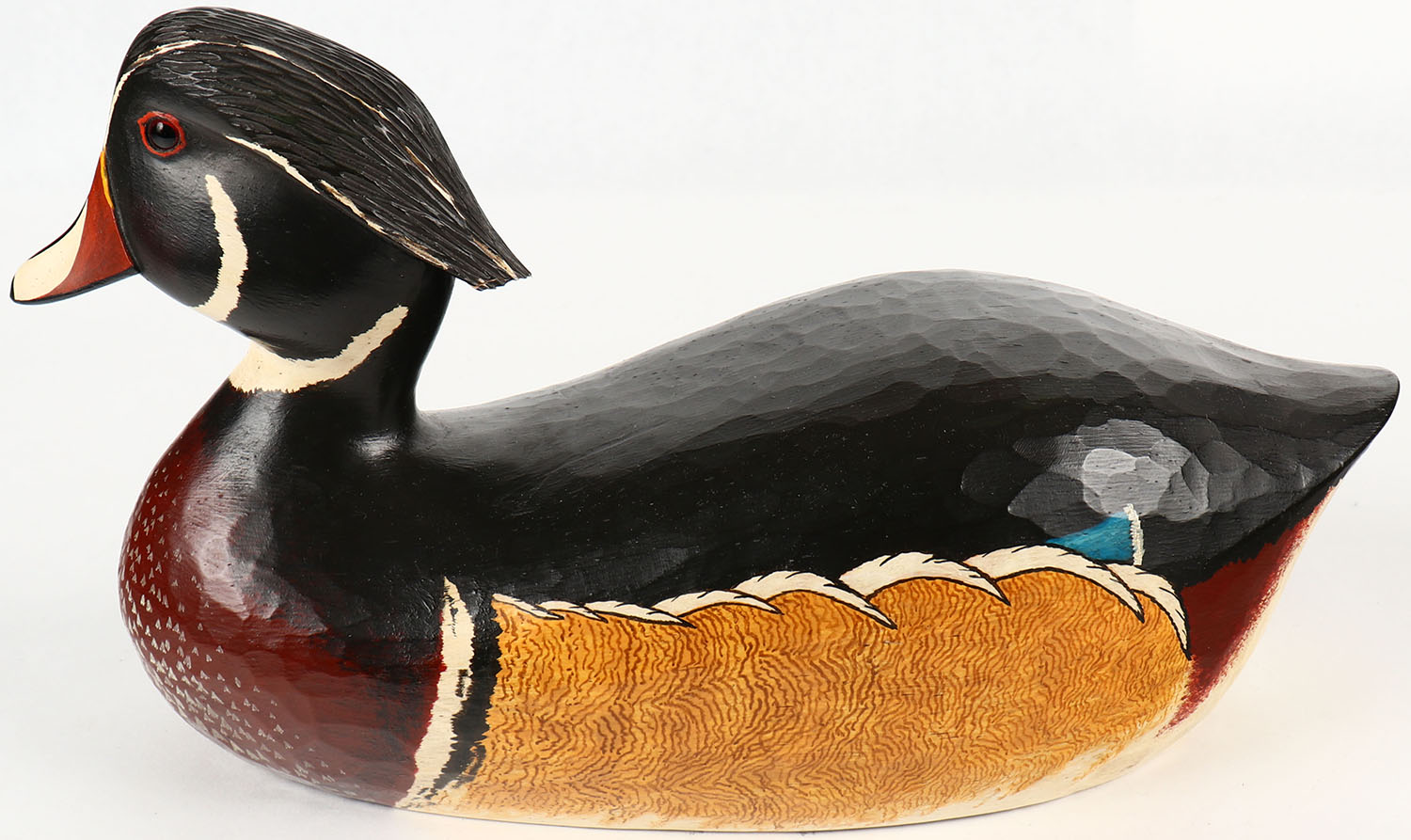 Woodduck Drake by Del Smith, GE, hollow wood, mint original paint with lots of feather details, 11 1/2'' OAL. Grade: Excellent - Value: 20 to 60