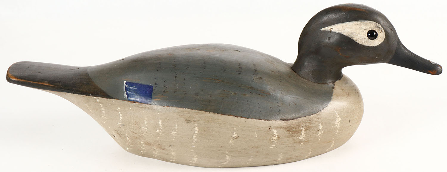 Woodduck Hen by R. Connolly, GE, solid wood, excellent original paint, signed & branded on bottom, 15'' OAL. Grade: Excellent - Value: 20 to 60