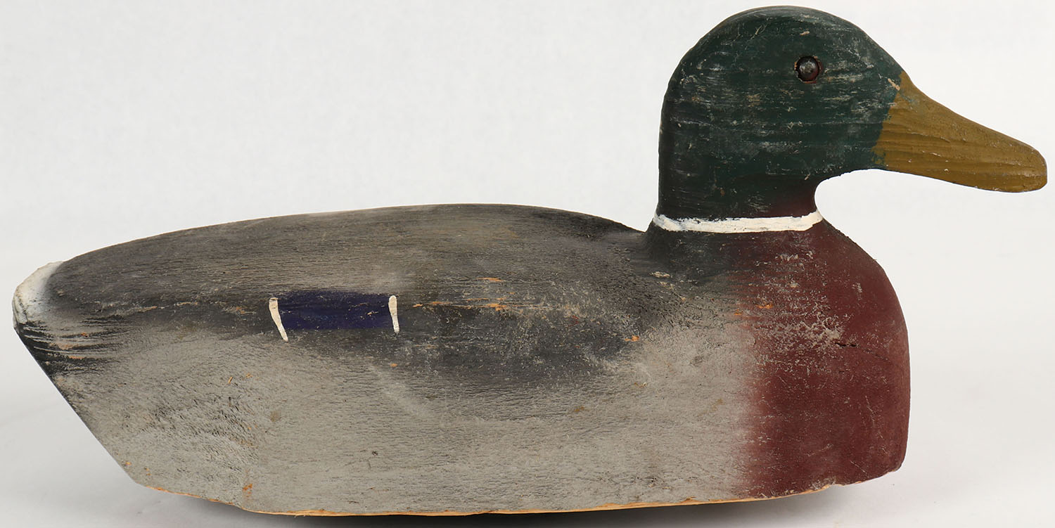 Mallard Drake By Herter's?, TE, balsa wood, original paint, 13 1/2'' OAL. Grade: Very Good ++ - Value: 20 to 60