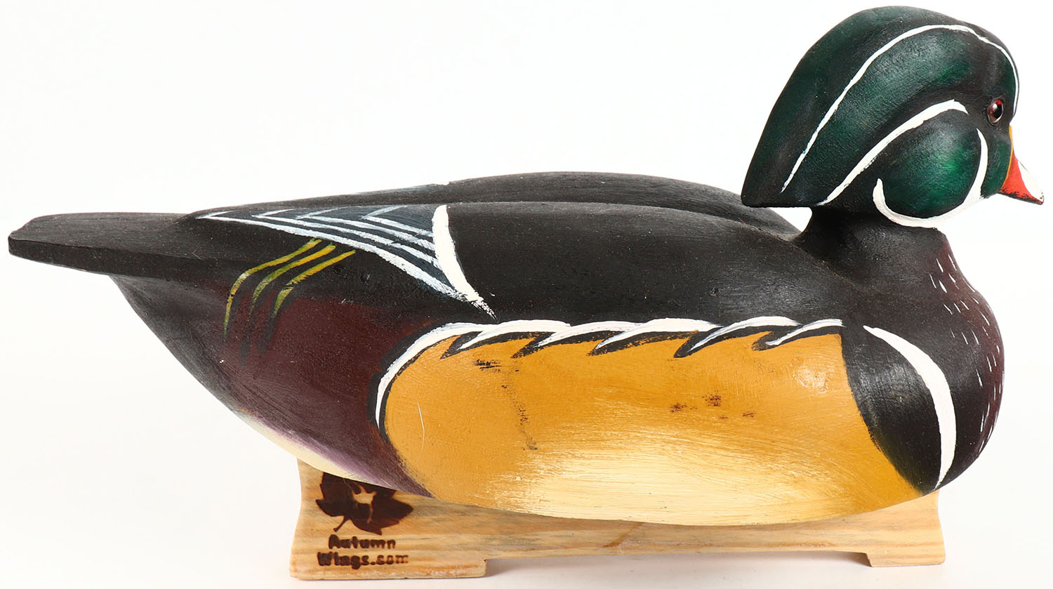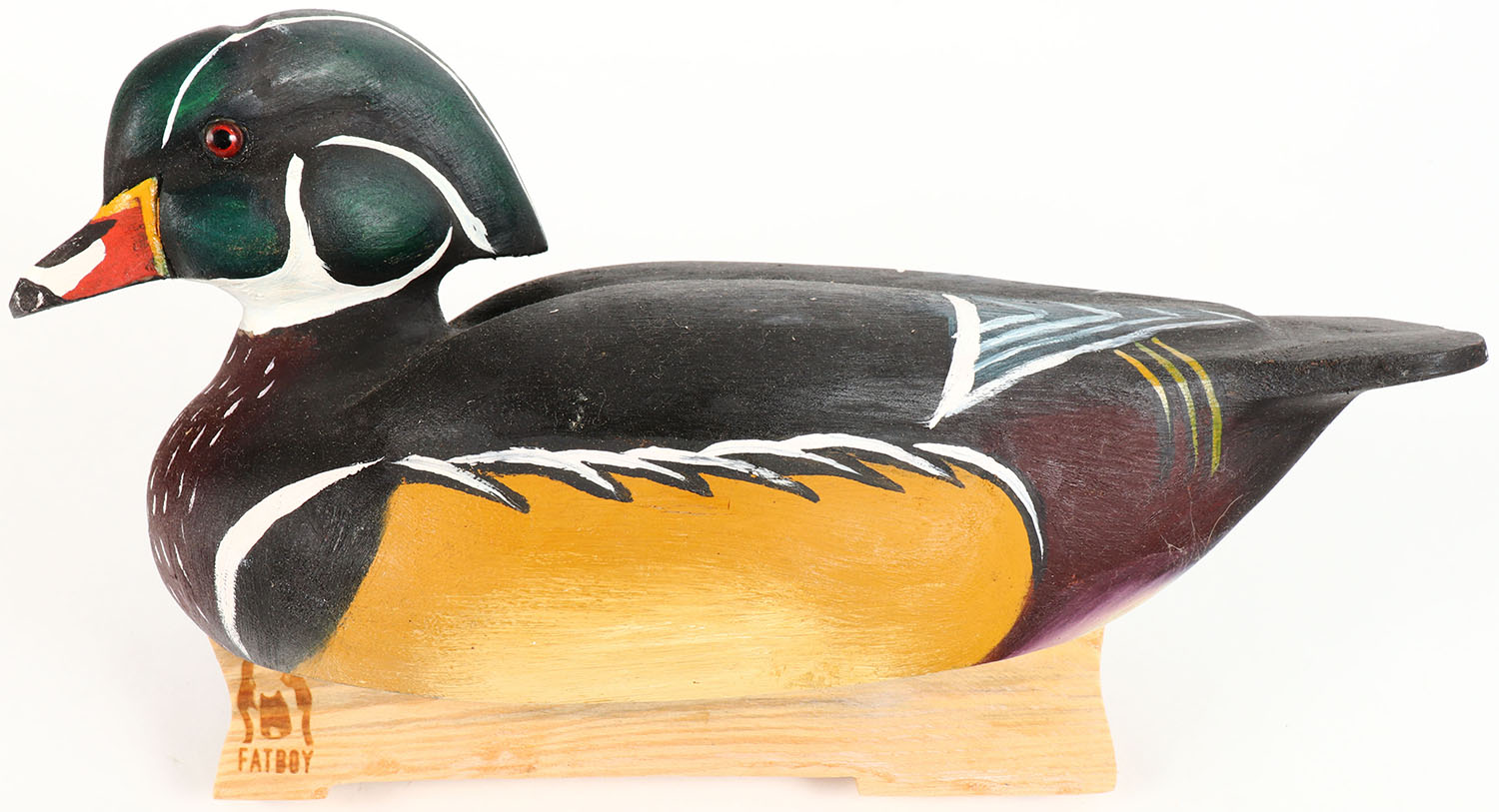 Woodduck Drake by Fat Body, GE, solid wood with bottom hollowed out, mint original paint, 14'' OAL. Grade: Excellent ++ - Value: 20 to 60