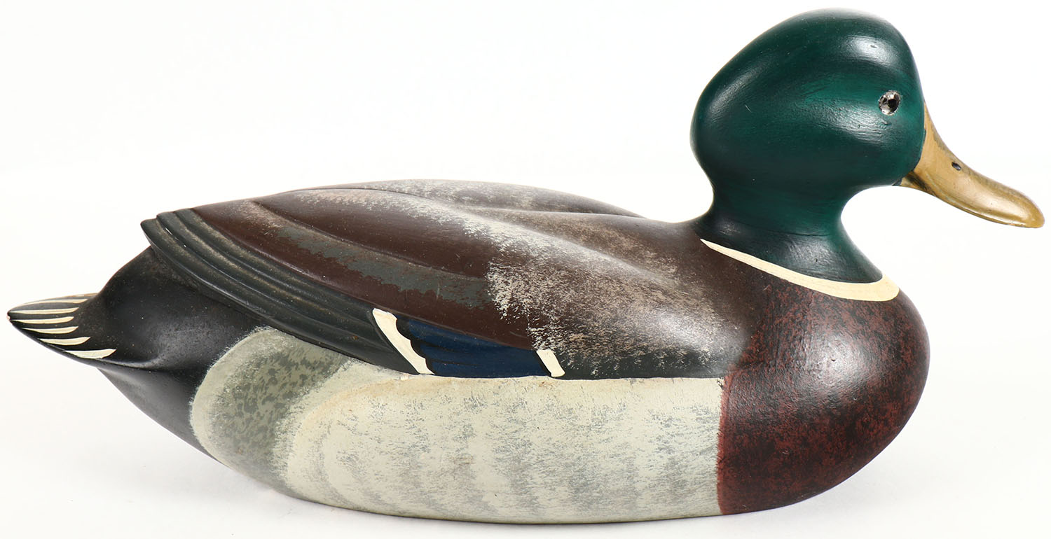 Mallard Drake by Bob Berry, 1984, GE, solid wood, original paint, 13 1/2'' OAL. Grade: Excellent ++ - Value: 20 to 60
