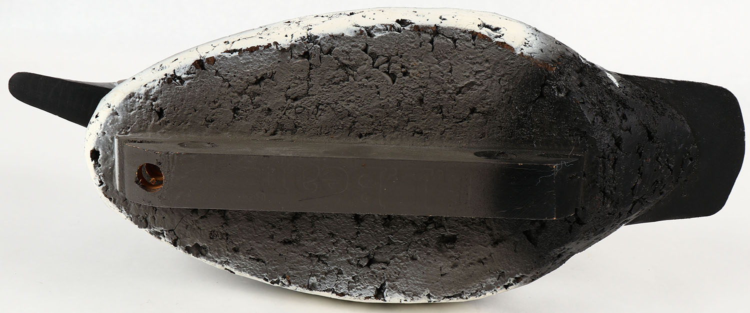 Woodduck Hen by LL Bean, marked on keel, glass eyes, solid cork body, wood head, original paint, structurally excellent. Grade: MINT - Value: 30 to 60