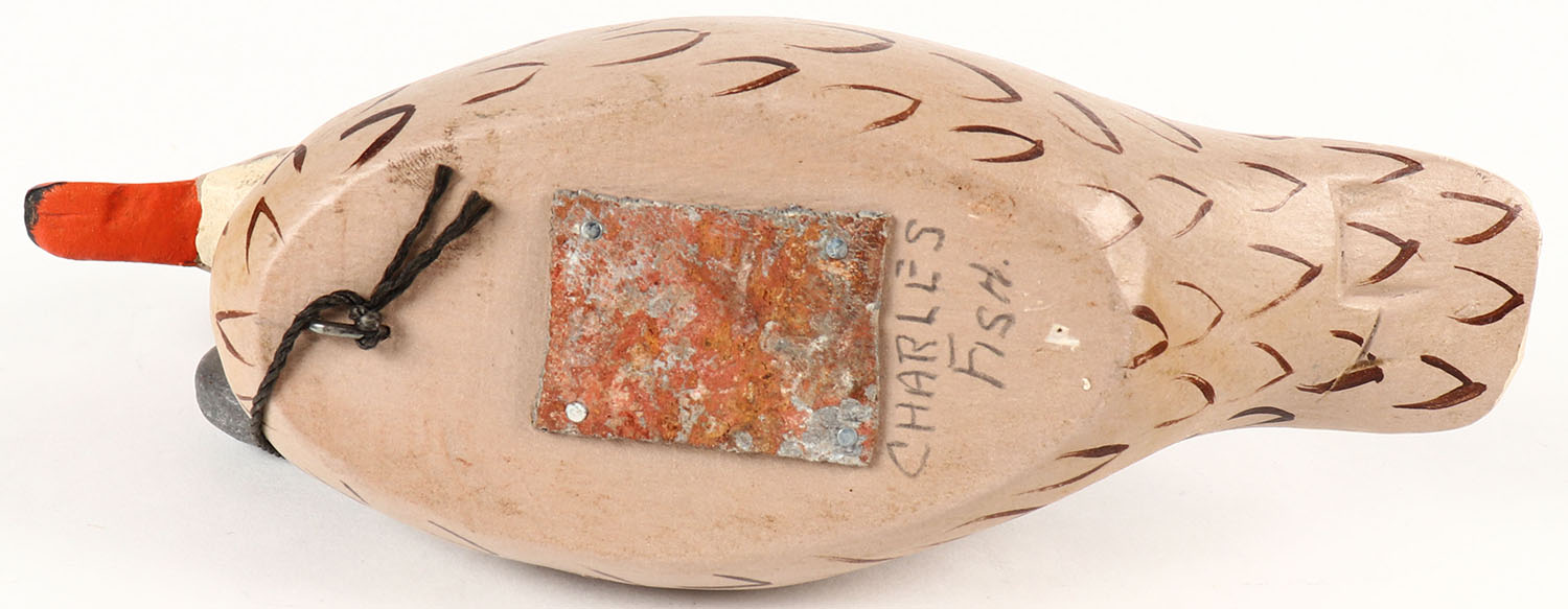 Miniature Mallard Hen by Charles Fish, solid wood, original paint, 7 1/2'' OAL. Grade: Excellent - Value: 20 to 60