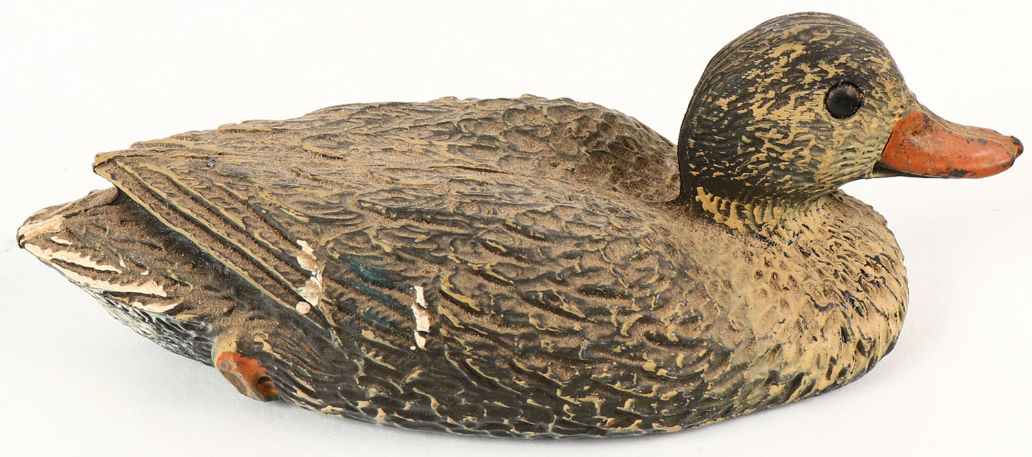 Salesman Sample Mallard Hen decoy by Sport-Plast, plastic, original paint, 6 1/2'' OAL. Grade: Excellent - Value: 10 to 50