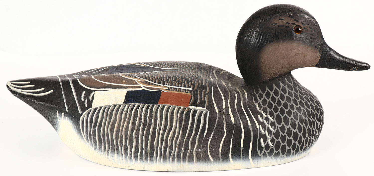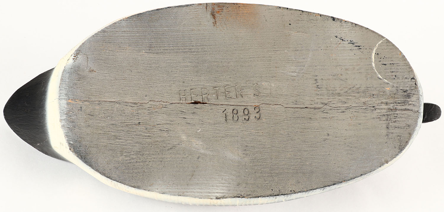 Gadwall Drake by Herters Decoy Co., Waseca, MN, 1893 series, glass eyes, solid wood, original paint, structurally excellent, marked on bottom. Grade: Excellent ++ - Value: 40 to 100