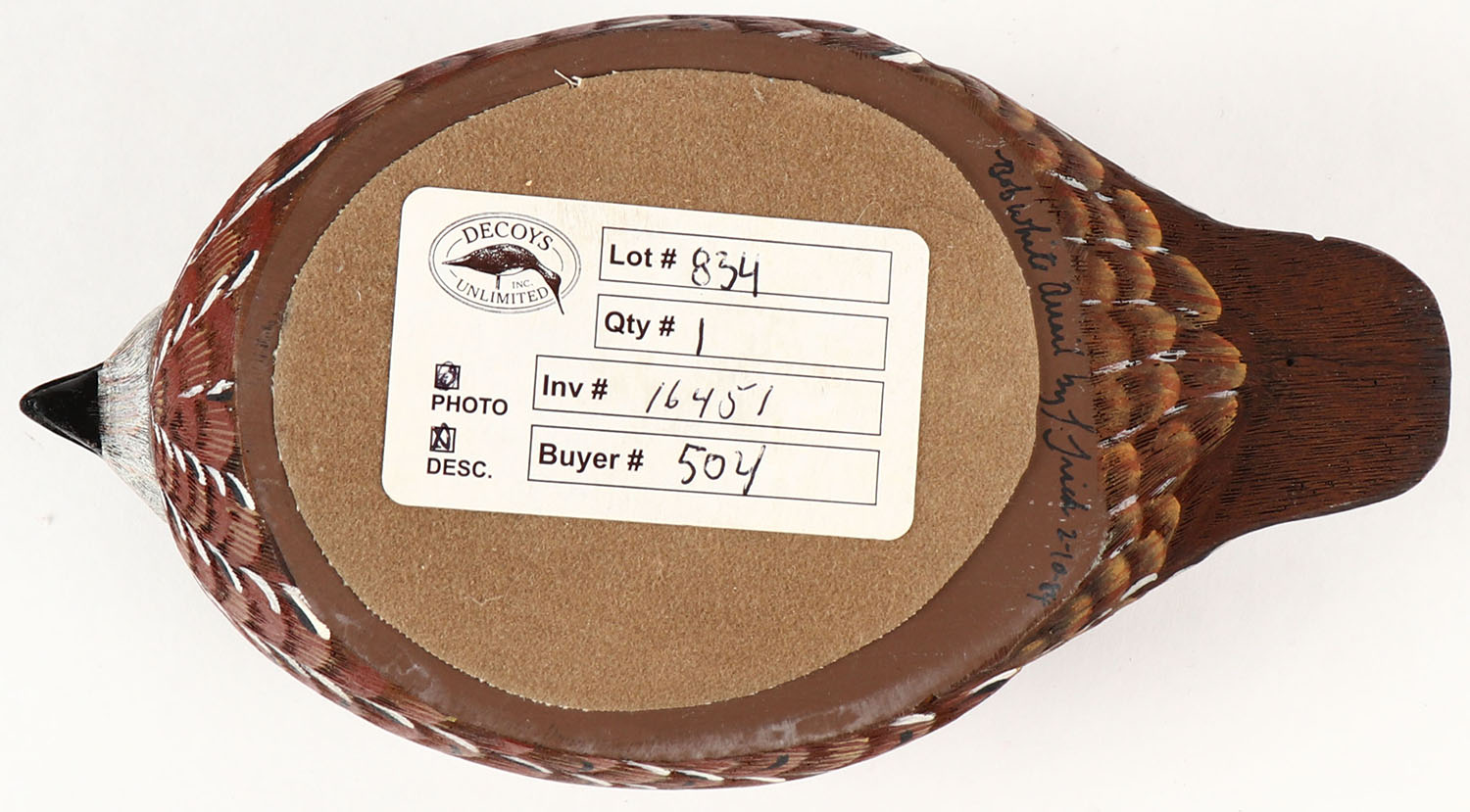 Bob White Quail by L. Finch, GE, solid wood, original paint, 7'' OAL. Grade: MINT - Value: 10 to 50