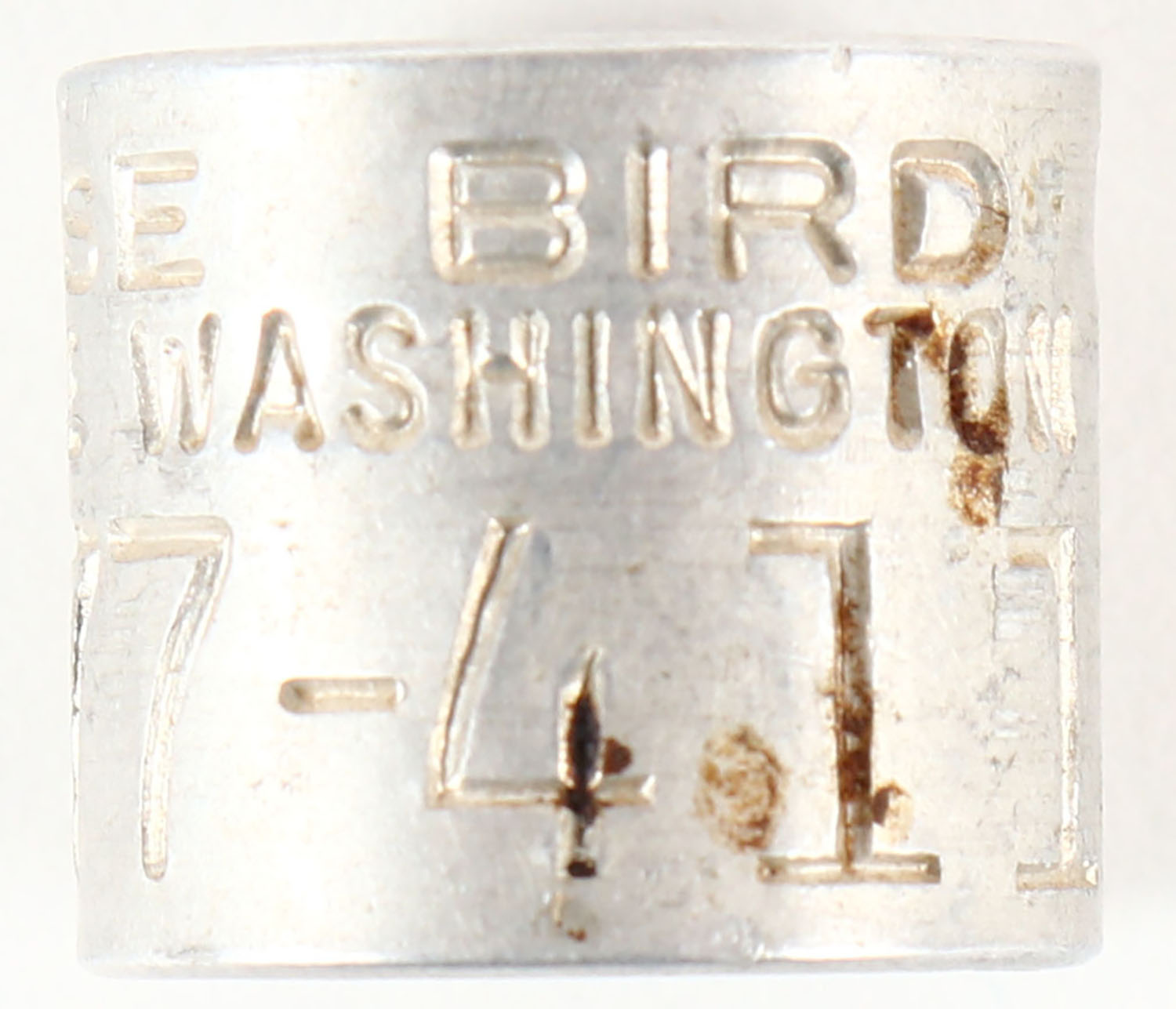 DUCK BAND, with certificate from 1982 we are offering a few duck bands that were all shot at one duck club in Peoria IL from 1964 - 1999, ''MALLARD FARMS R R 2'', this one has a certificate, this one was banded NEAR 25 mile NE of Their R Fall MN 09/07/82 and shot 10/21/82. Grade: Excellent - Value: 30 to 60