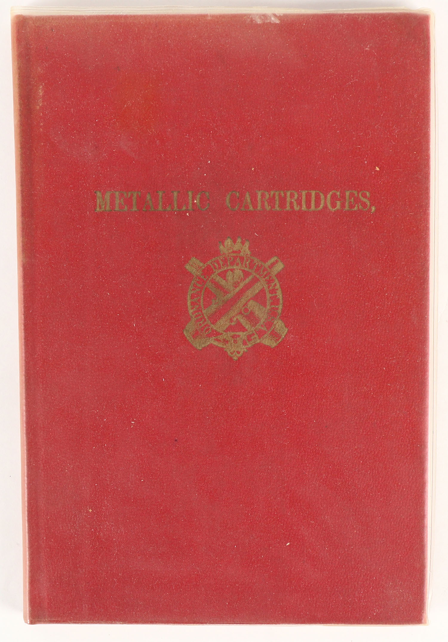 Metallic Cartridges Ordinance Department USA, 740 of 1000 copies made, 7' x 10 1/2'', pages clean with age soiling, hardcover very good, plastic jacket good with soiling. Grade: Very Good - Value: 4 to 40