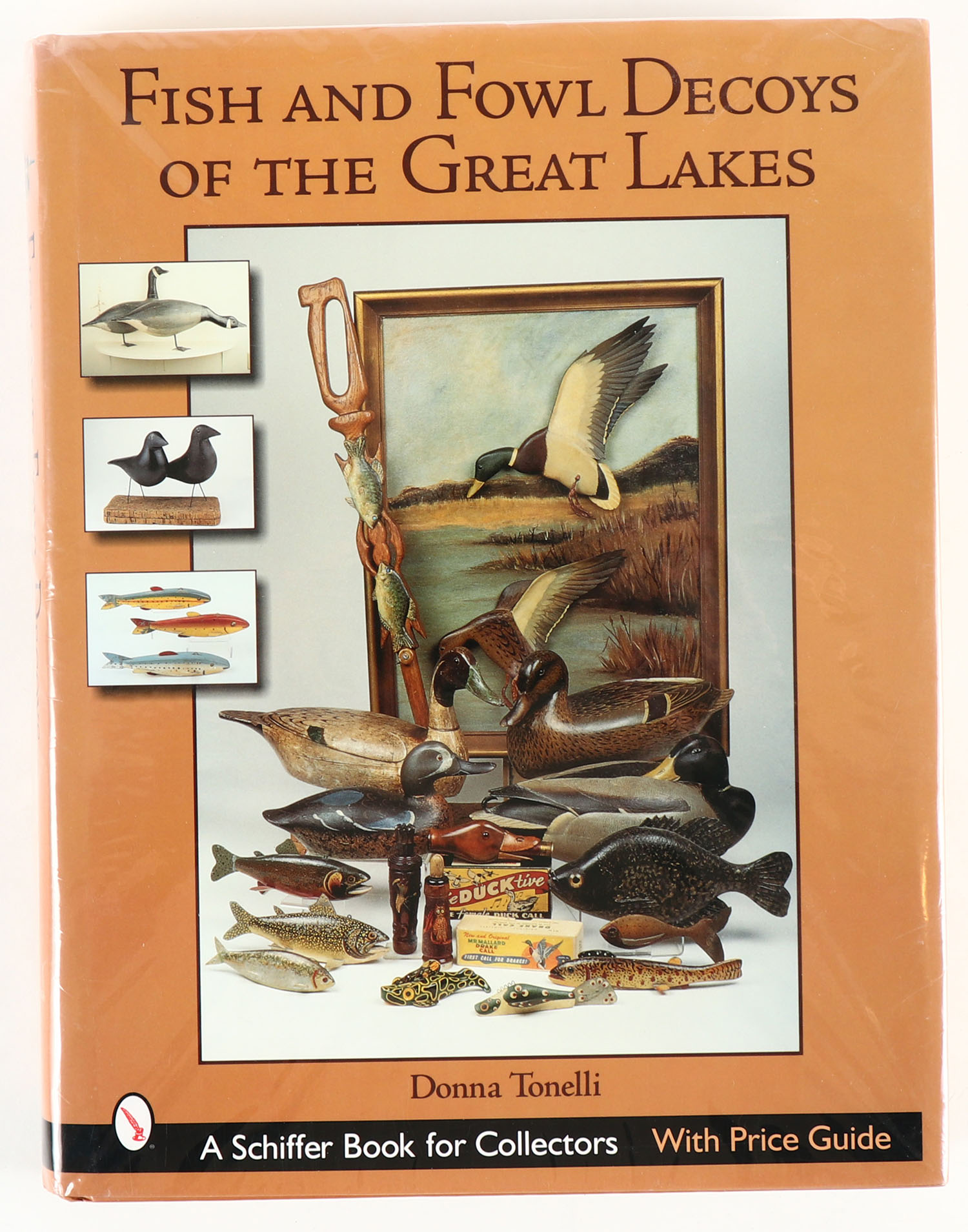 Fish And Fowl Decoys Of The Great Lakes by Donna Tonelli, 2002, signed copy, 9'' x 11 1/2'', 288 pages, pages clean, binding tight, color and b/w images, hardcover excellent, dust jacket excellent. Grade: Excellent ++ - Value: 10 to 65