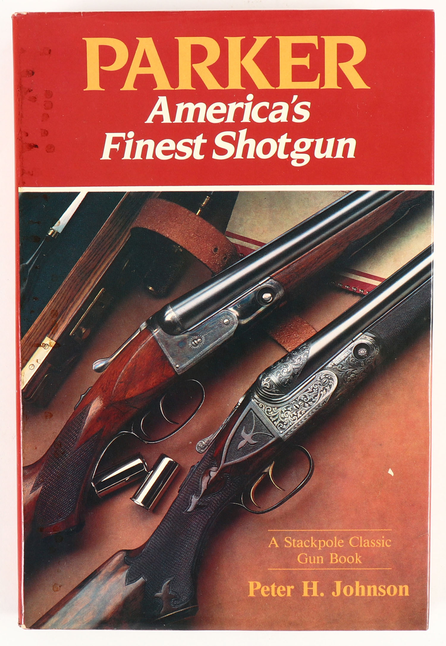 Parker Americas Finest Shotgun Third Edition by Peter H. Johnson, 1985, 6 1/2'' x 9 1/2'', 260 pages, pages clean with soiling on inside front and back cover, binding tight, b/w images, hardcover excellent, dust jacket very good with soiling along spine. Grade: Very Good ++ - Value: 4 to 40