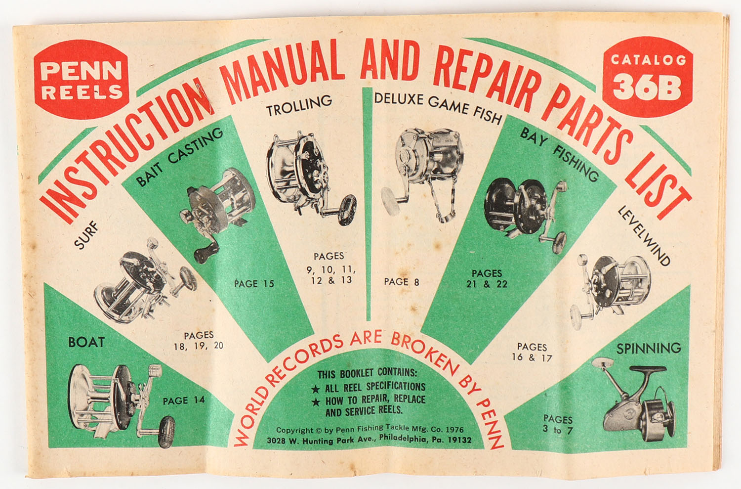 | Penn Reel Catalog with parts list, No. 36B. Grade: Very Good +...