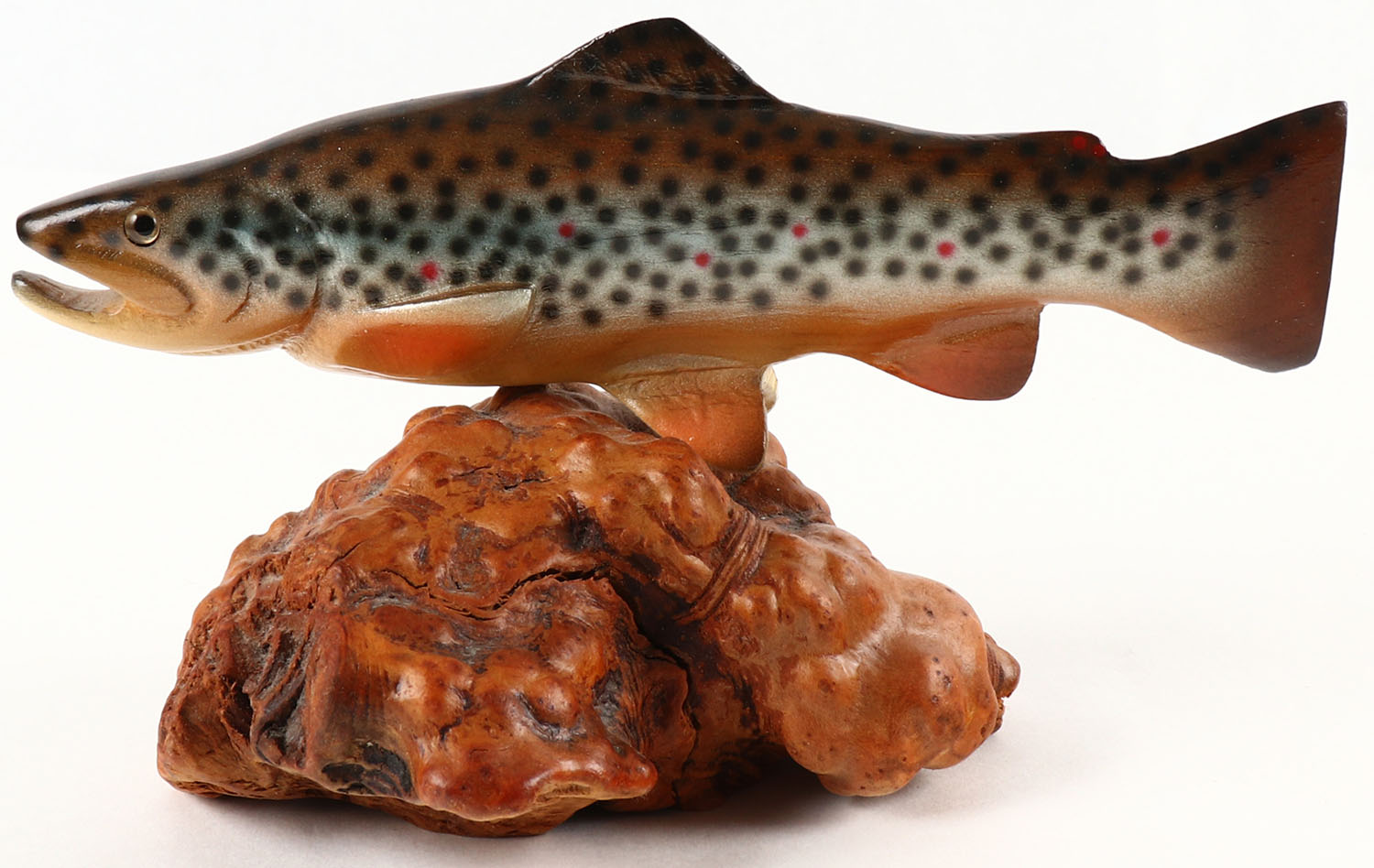 | Fish carving by Big Sky Carvers, MT, 7 1/2'' long. Grade: Exc...