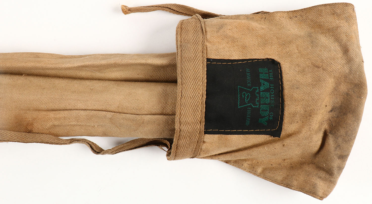 Rare Hardy Mallard, Bamboo Fly Rod, SN: 6135, 10', 9wt, 2/1, rod is very nice with wonderful wraps except for first one is missing one side of the wrap, cork is very nice and clean, marked cloth bag, Very Rare rod in wonderful condition. Grade: Excellent - Value: 100 to 400