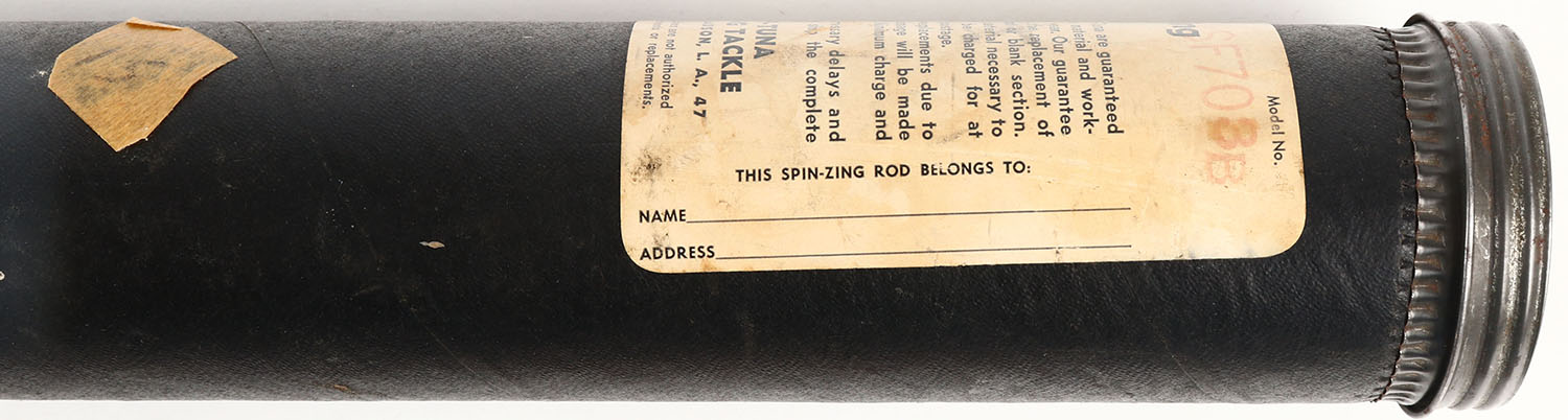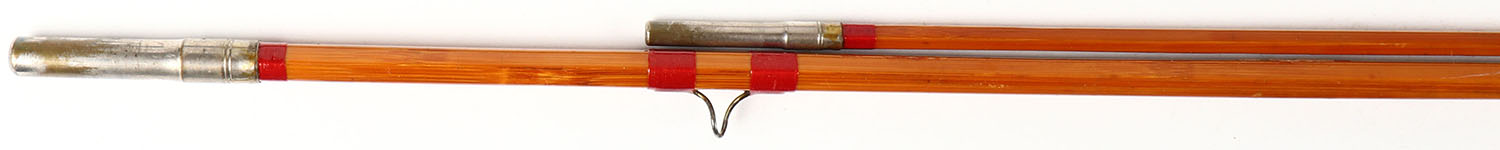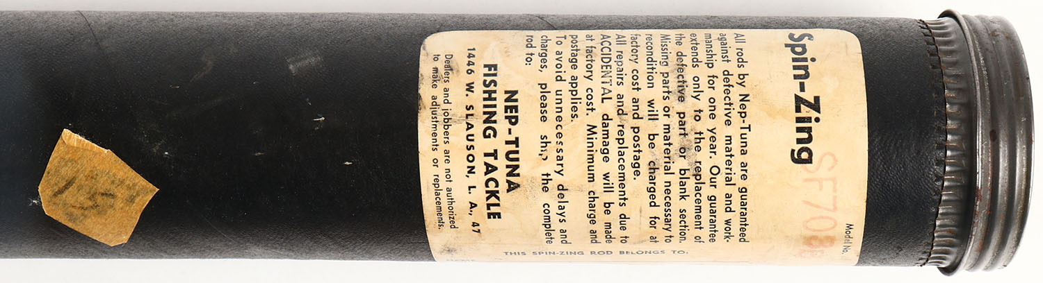 Nep-Tuna bamboo fly rod,, Steel Vine, , 9' 6'', 6wt?, 3/1 (the tip is about 6'' shorter than the other pieces), rod is very nice with wonderful wraps, cork is very nice but has a coat of lacquer, marked cardboard tube. Grade: Very Good ++ - Value: 20 to 100
