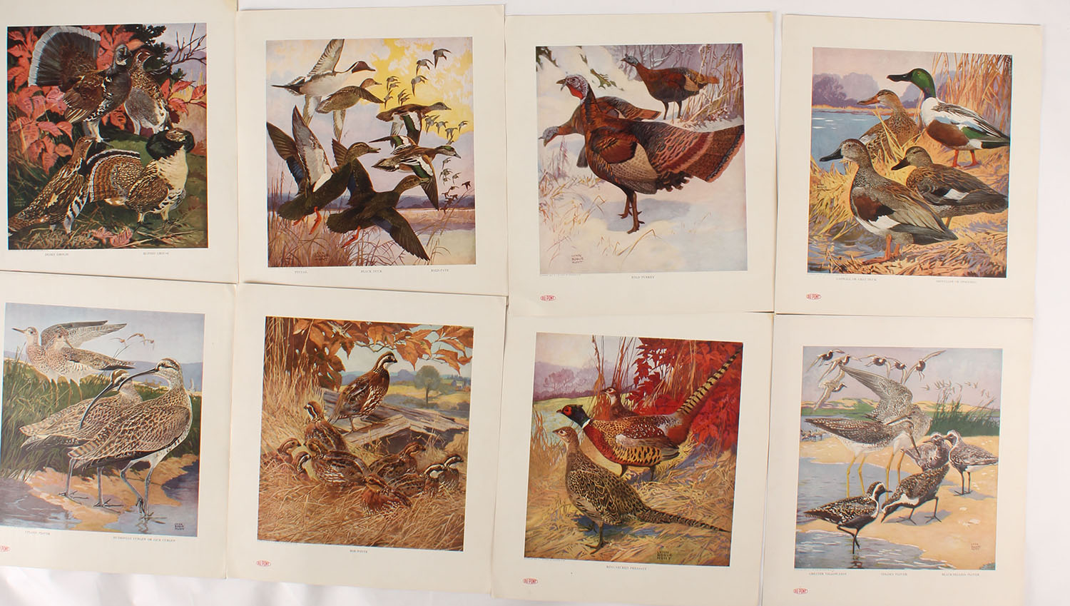Set of 18 Lynn Bogue Hunt prints done for E.I. Du Pont de Nemours & Co, ''OUR AMERICAN GAME BIRDS'', has original box, 13'' x 14 1/2'', all have great color. Grade: Excellent ++ - Value: 50 to 250