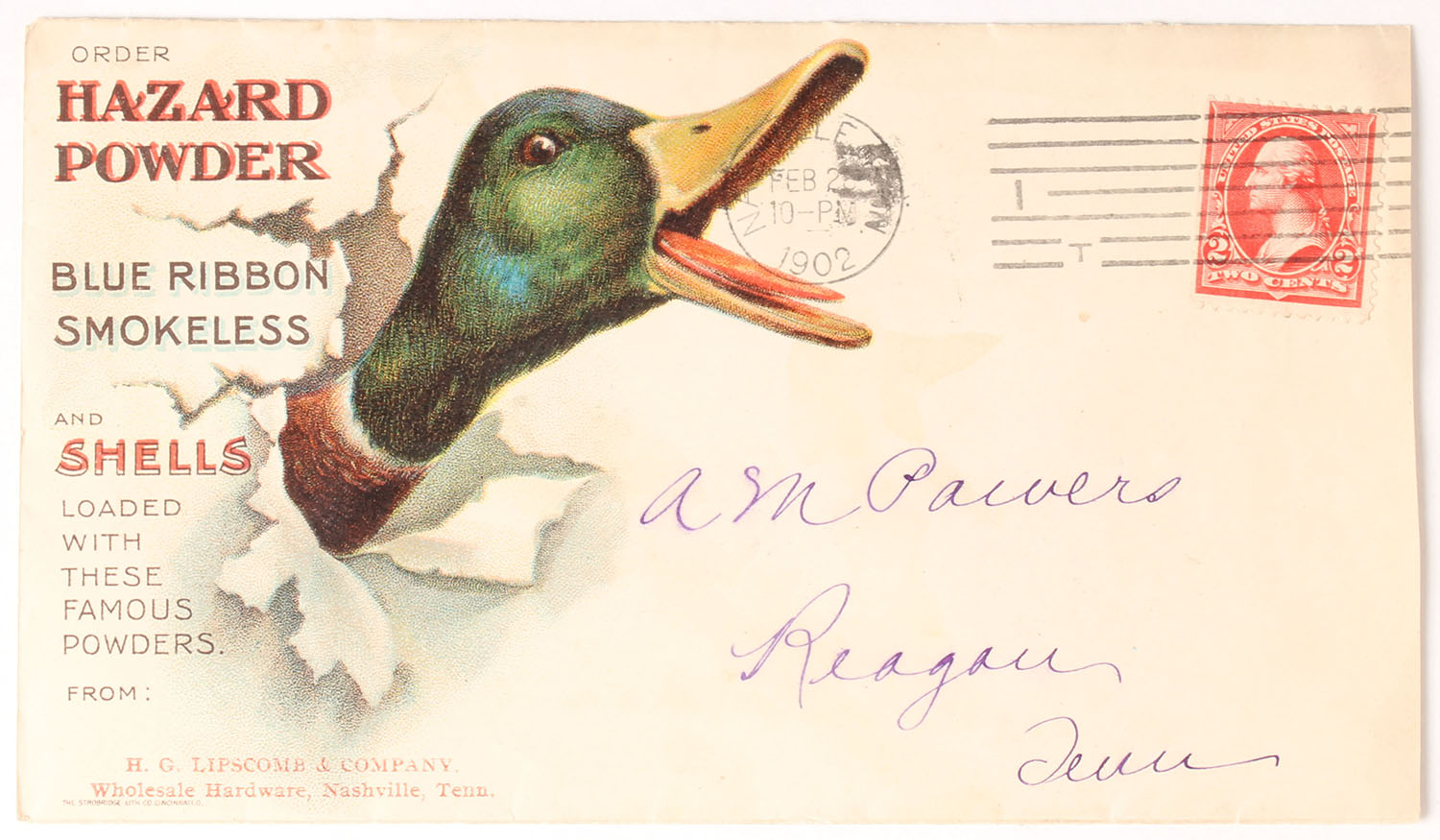 Hazard Powder Co. Envelope, unused, image of mallard drake coming through the envelope. Grade: Excellent - Value: 50 to 200