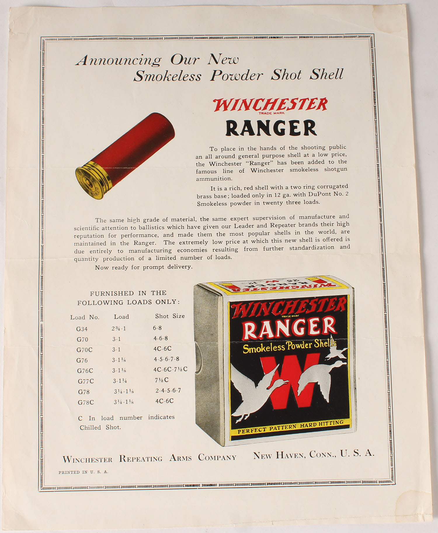 Winchester RANGER Shot Shell flyer, single sided, 8 1/2'' X 11''. Grade: Excellent ++ - Value: 6 to 30