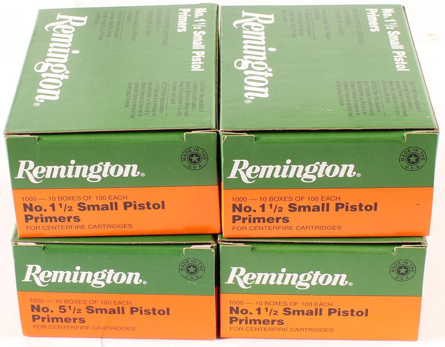 Lot of 4 Remington No 1 1/2 Small Pistol Primers bricks, all FULL. Grade: Excellent - Value: 20 to 200