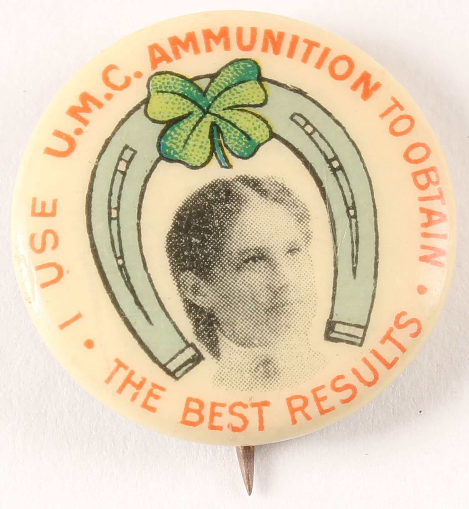RARE! UMC pinback, Annie Oakley paperback. Grade: Excellent - Value: 100 to 200