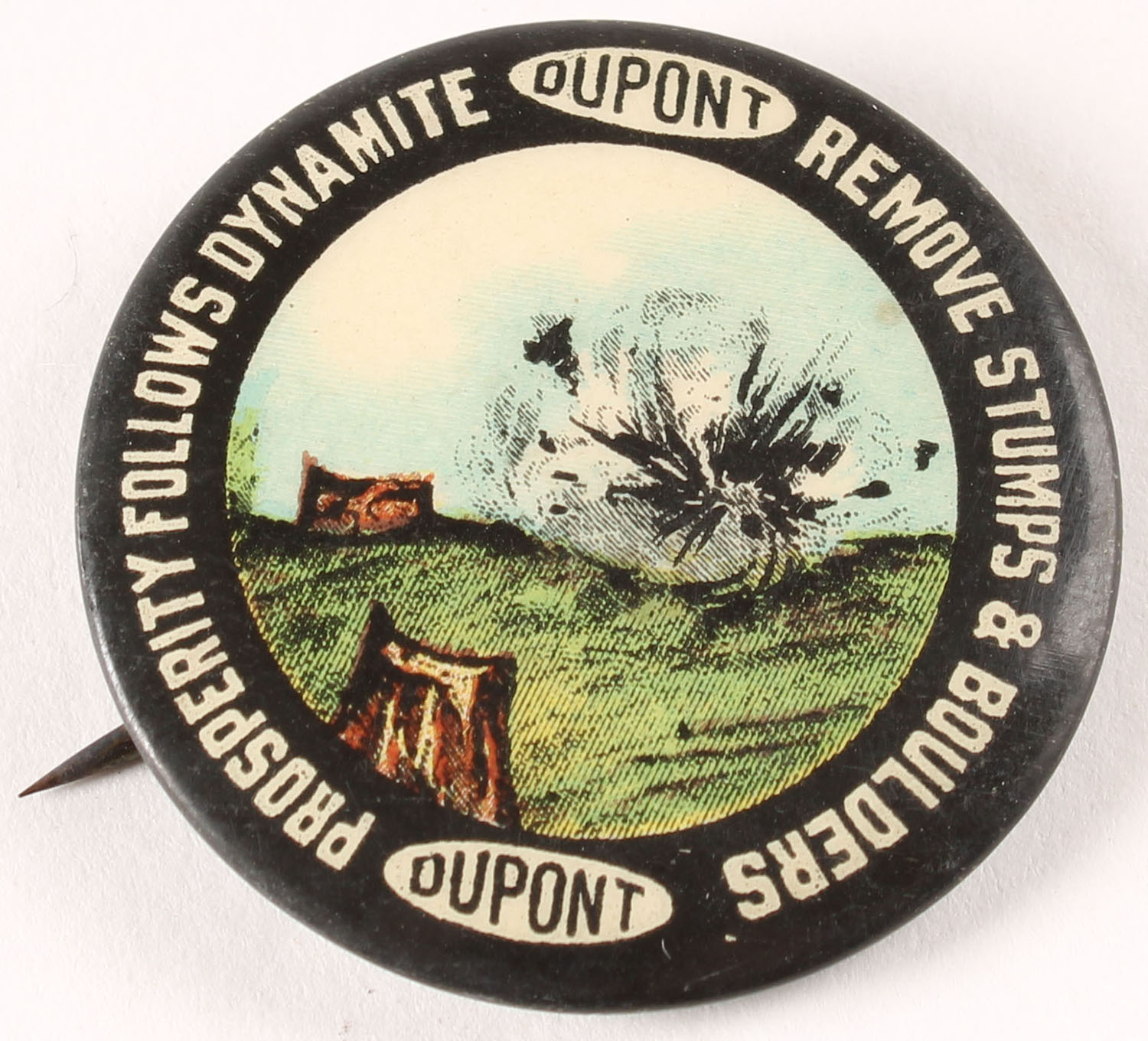 Dupont powder smokeless powder pinback, no paperback. Grade: Excellent - Value: 10 to 50