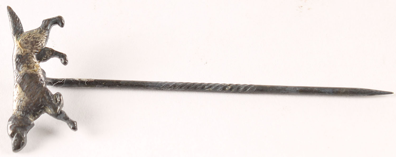 DUPONT Dog stickpin, collar on dogs neck in marked DUPONT & the back is marked DUPONT POWDERS. Grade: Excellent - Value: 4 to 400