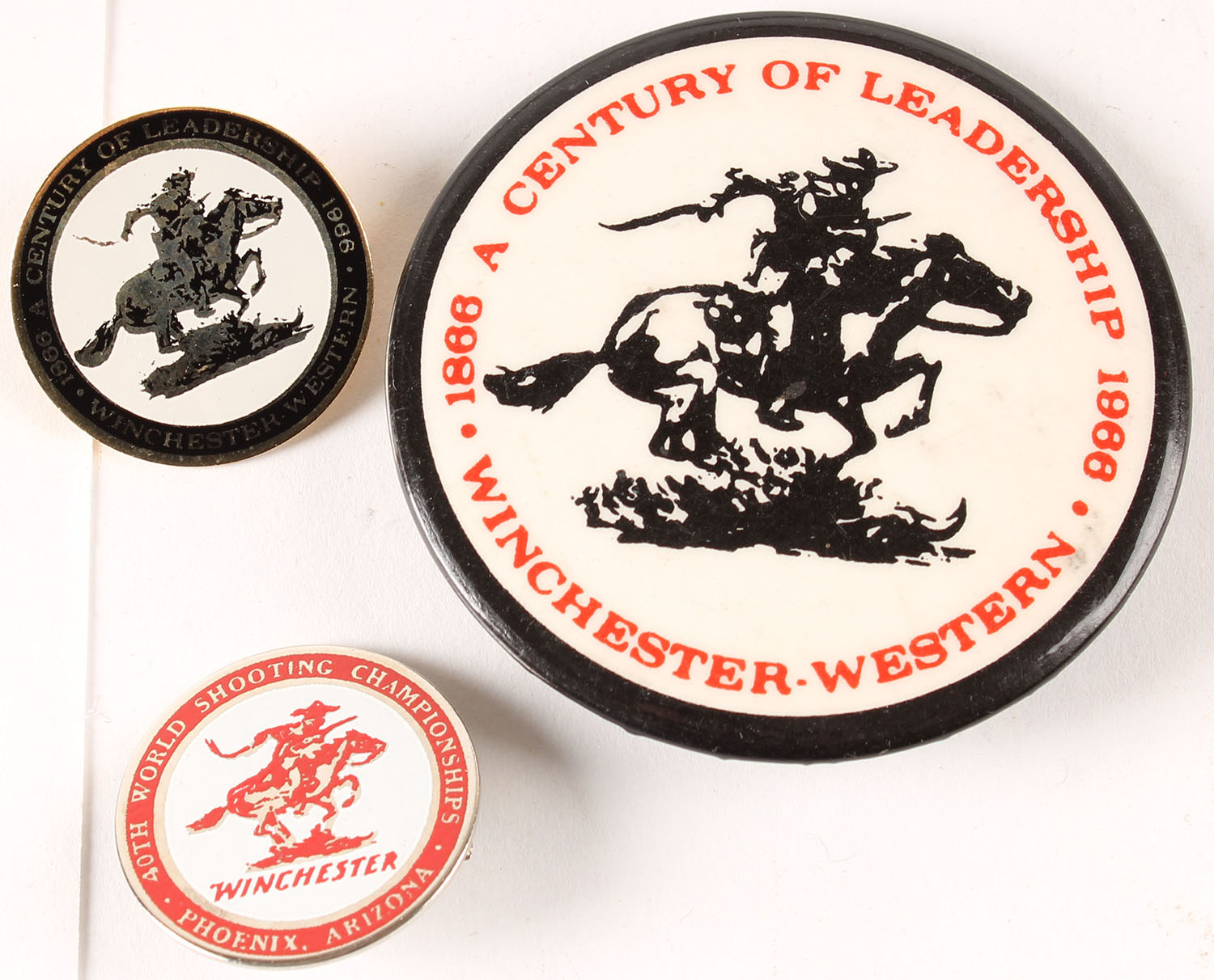 Lot of 3 Winchester pinbacks. Grade: Excellent ++ - Value: 4 to 40