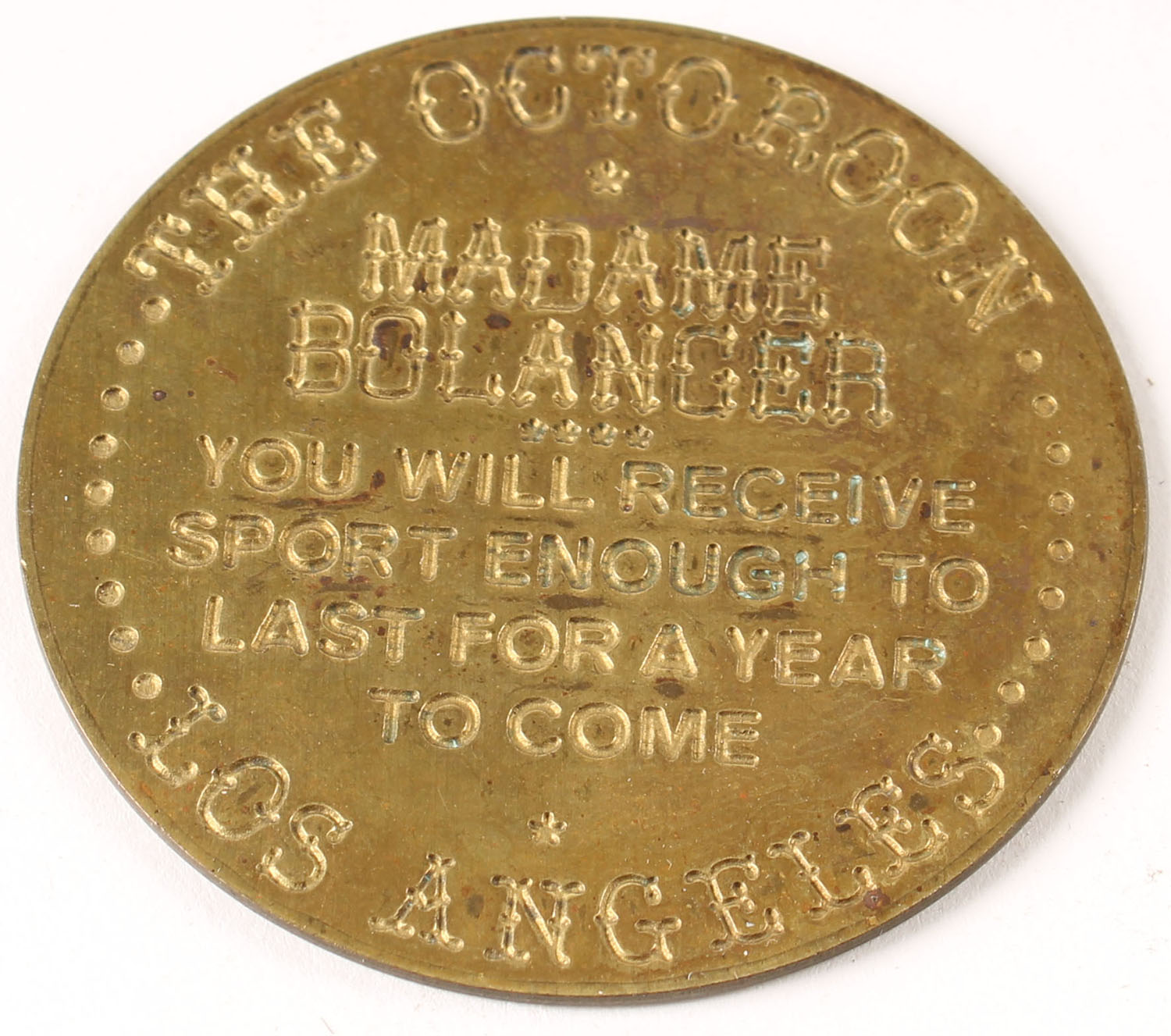 Large Brothel Token Los Angeles, one sided. Grade: Very Good ++ - Value: 20 to 60