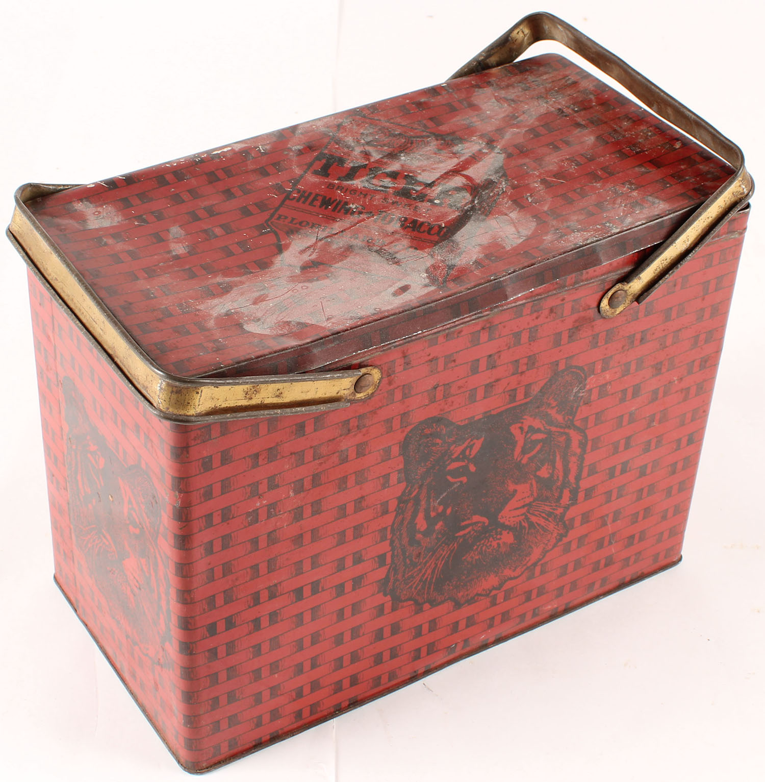 Large metal tobacco box, Empty, P.Lorillard Co Tiger chewing tobacco. Grade: Very Good ++ - Value: 20 to 100