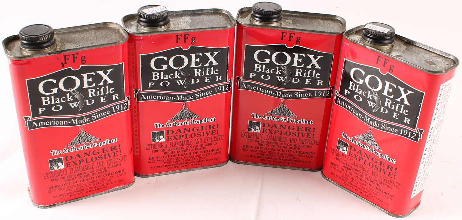 Lot of 4 Goex powder cans, all FULL. Grade: Excellent ++ - Value: 20 to 200
