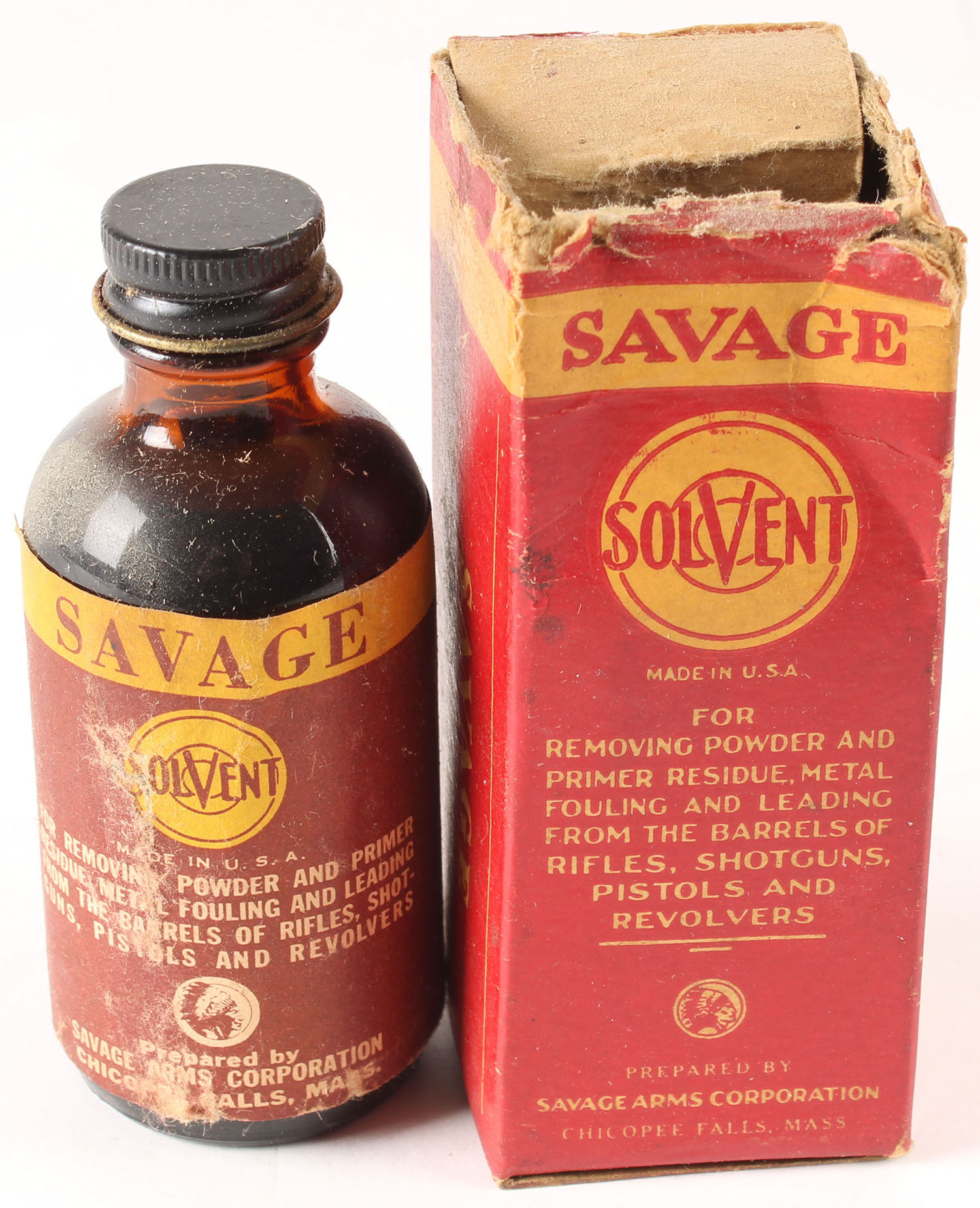 RARE! SAVAGE solvent, in cardboard box, FULL, top of box is missing. Grade: Excellent - Value: 10 to 50