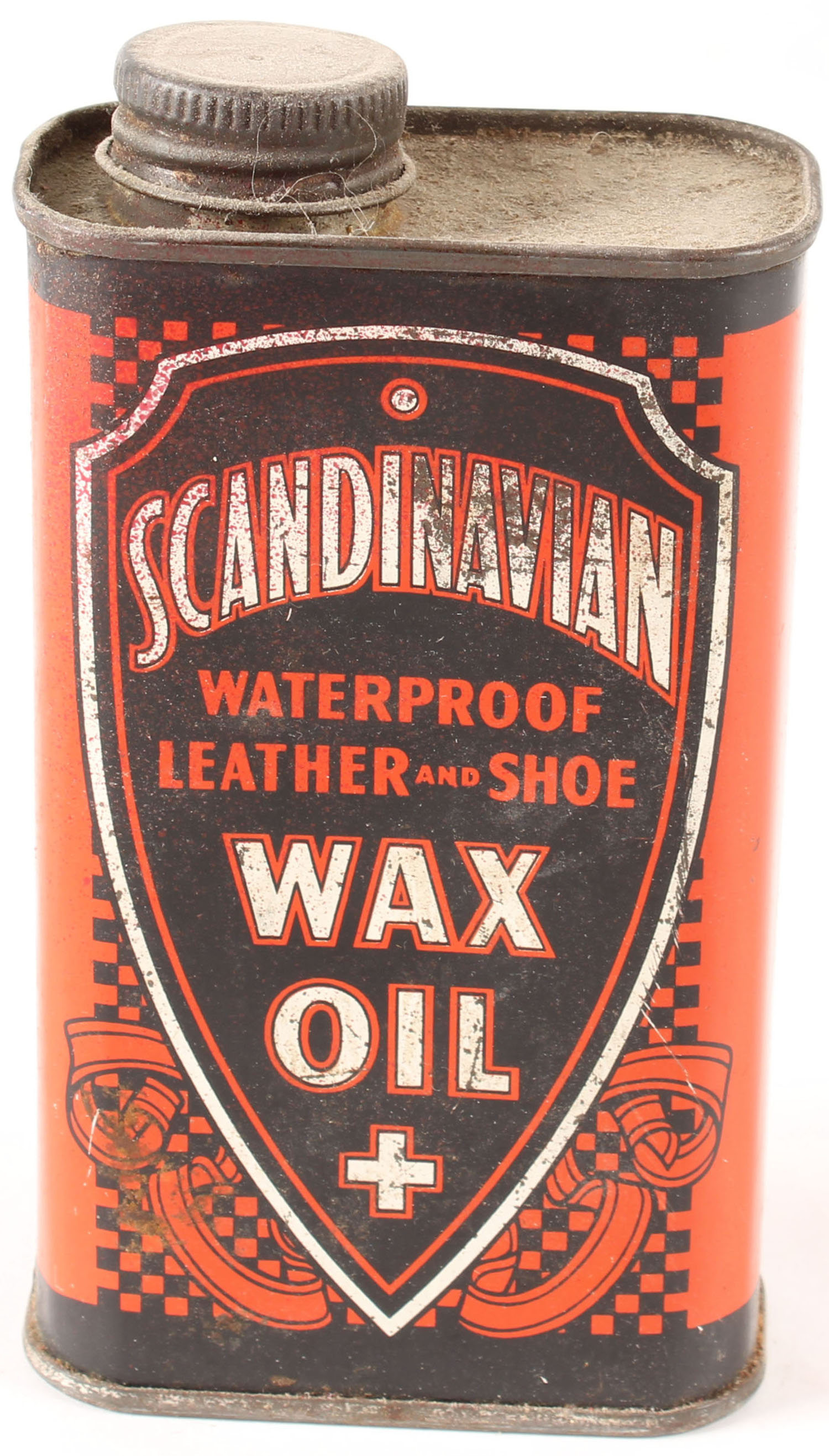 Scandinavian wax oil tin, partial. Grade: Excellent - Value: 4 to 40