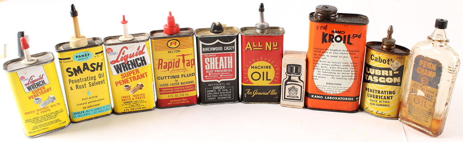 Large lot of oil tins, all partial. Grade: Excellent - Value: 10 to 50