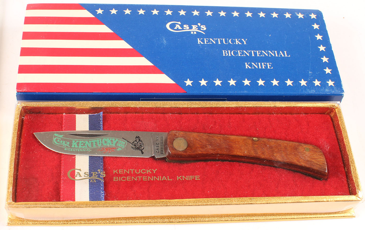 RARE! Case Kentucky Bicentennial knife, wood handle 3'' blade, has display box. Grade: Excellent - Value: 20 to 50