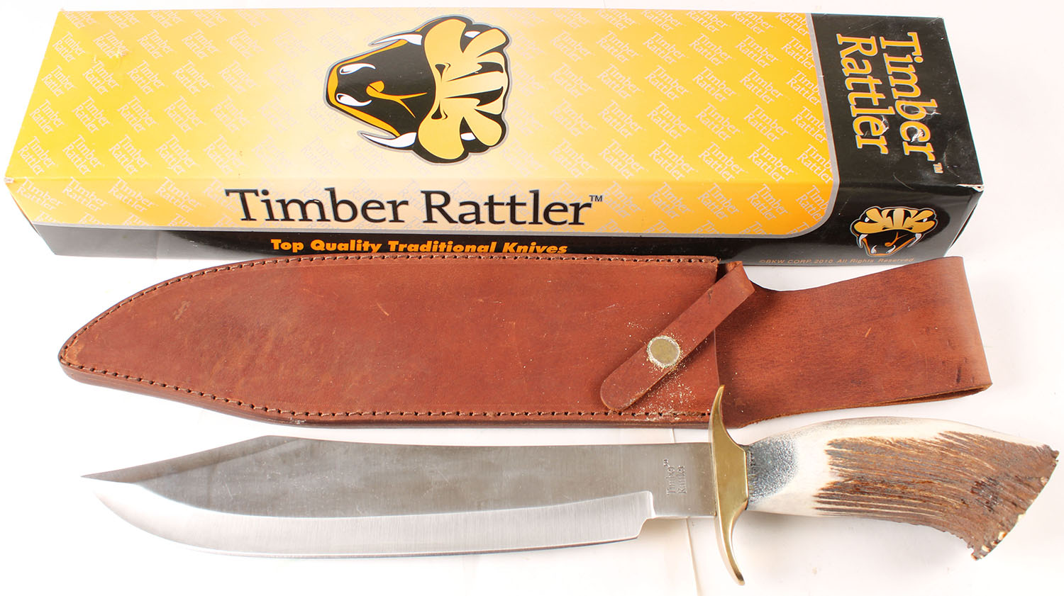 Timber Rattler large bowie knife, in original box with original stealth, has 11'' blade. Grade: Excellent - Value: 20 to 60