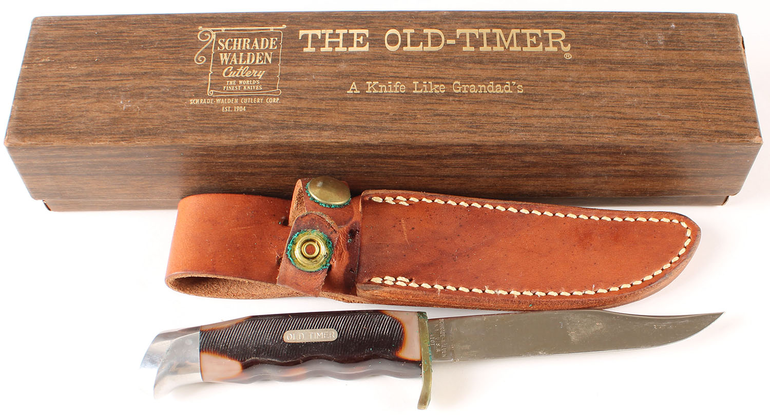 Schrade Old Timer knife, in original case, about a 4'' blade. Grade: Excellent ++ - Value: 30 to 90