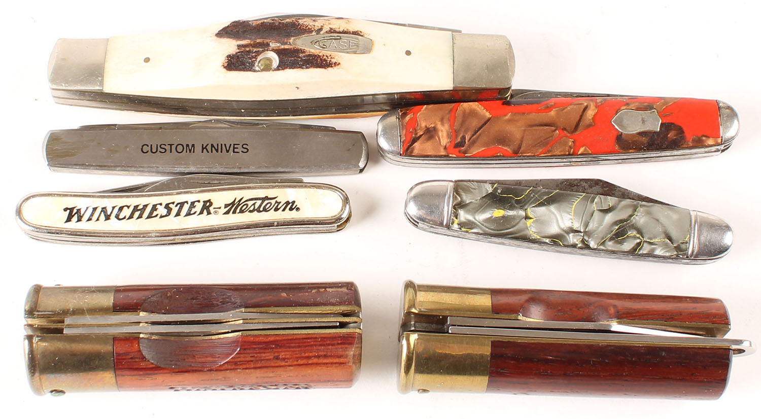 Lot of folding knives, some have age soiling. Grade: Very Good ++ - Value: 20 to 60