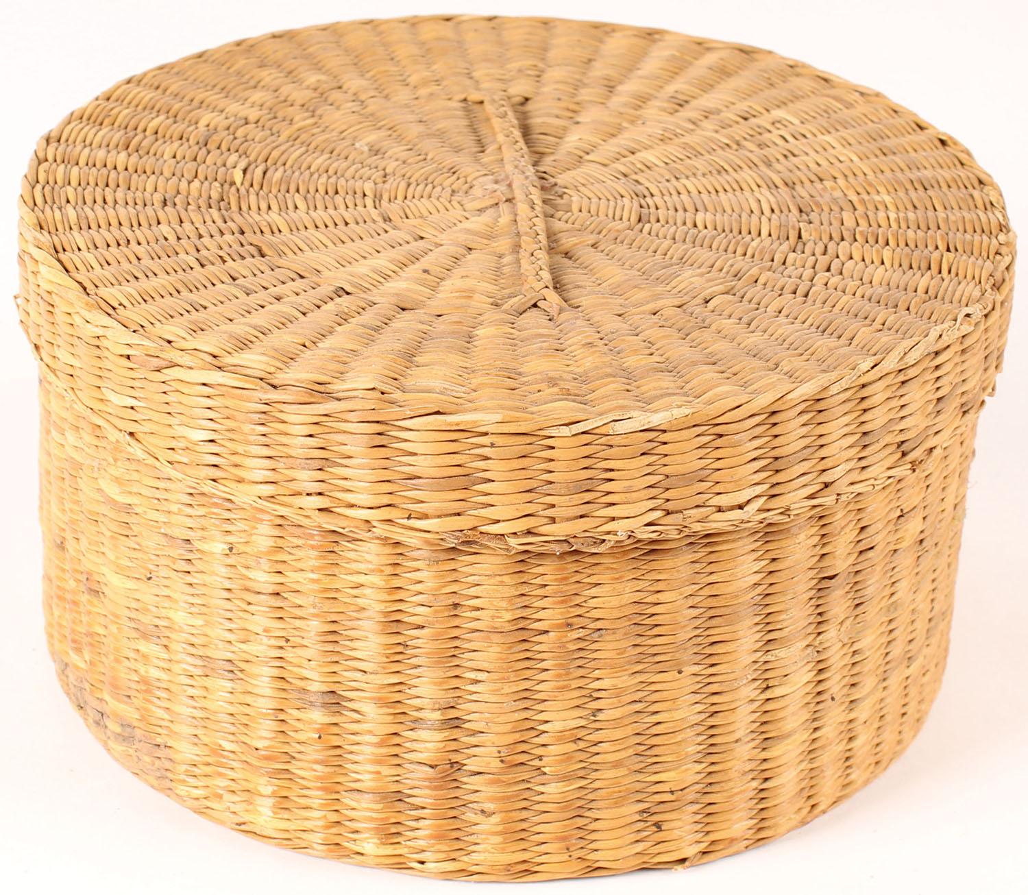northwest coast Indian lidded storage basket circa 1900. Grade: Excellent + - Value: 20 to 100