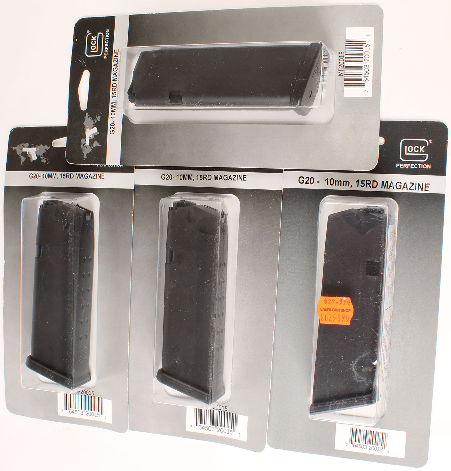 Lot of 4 Glock G20 15rd mag. Grade: Excellent ++ - Value: 30 to 90