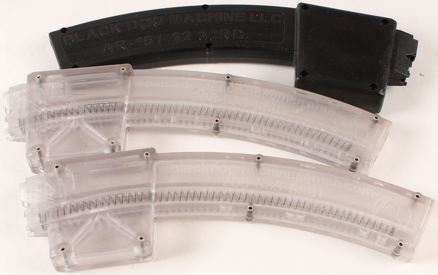 Lot of 3 Black Dog machine, .22 AR-15 mag, 30 rd.. Grade: Excellent - Value: 10 to 40