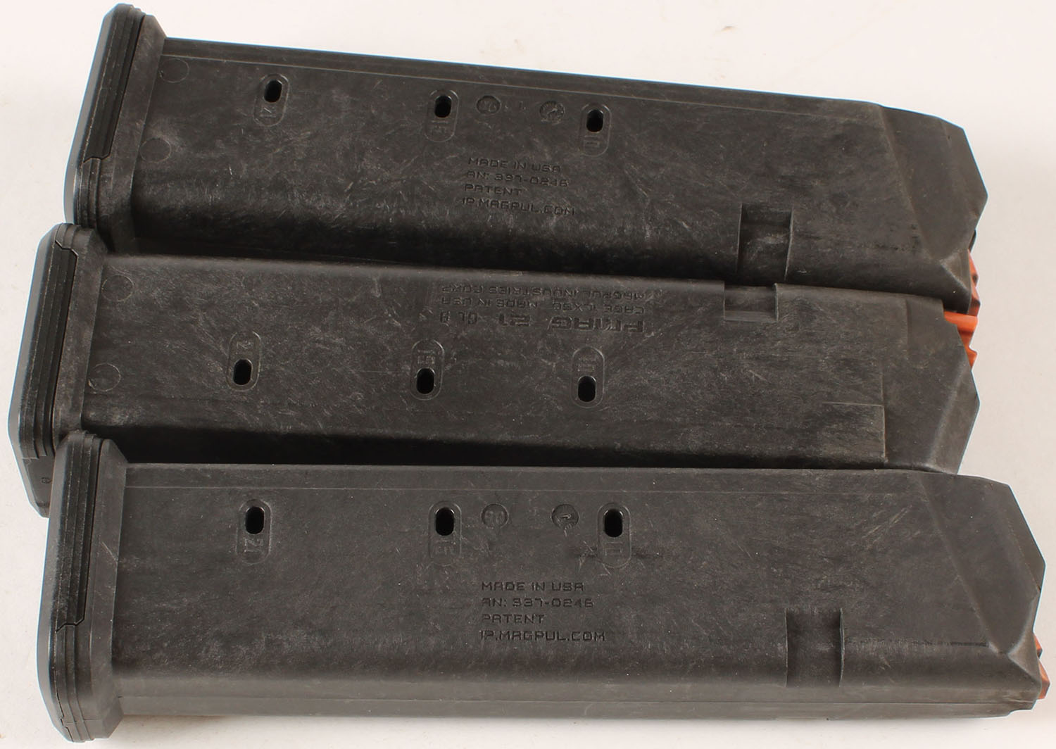 Lot of 3 Magpul Pmag 21 rd 9 mm Glock mags. Grade: Excellent - Value: 16 to 50