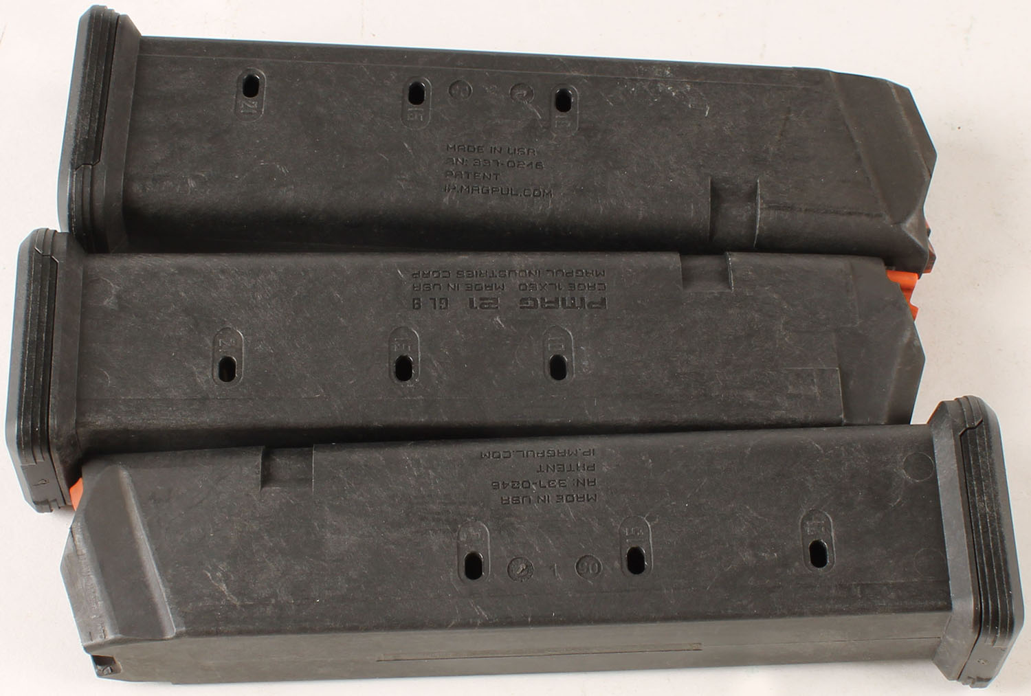 Lot of 3 Magpul Pmag 21 rd 9 mm Glock mags. Grade: Excellent - Value: 16 to 50